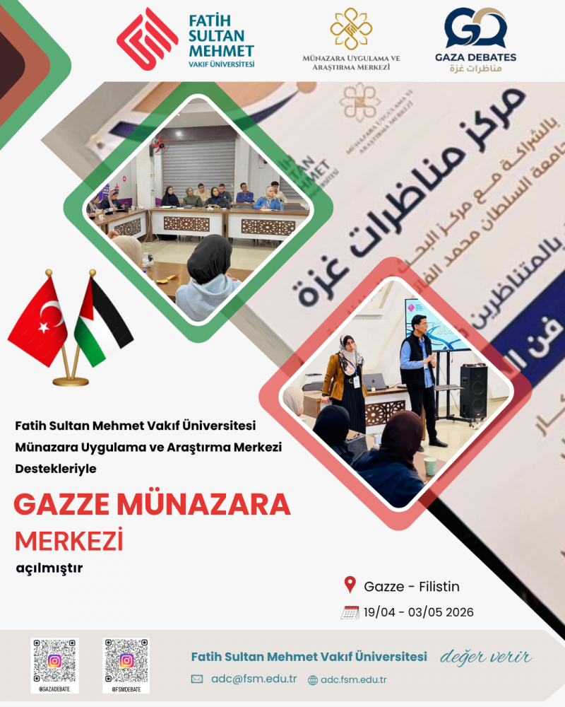 Fatih Sultan Mehmet Vakıf Üniversitesi bünyesinde faaliyet gösteren Münazara Uygulama ve Araştırma Merkezi’nin maddi ve teknik desteğiyle, Filistin’in Gazze şehrinde Münazara Merkezi açılmış ve Gazze’de eğitim ve münazara faaliyetleri başlatılmıştır.
