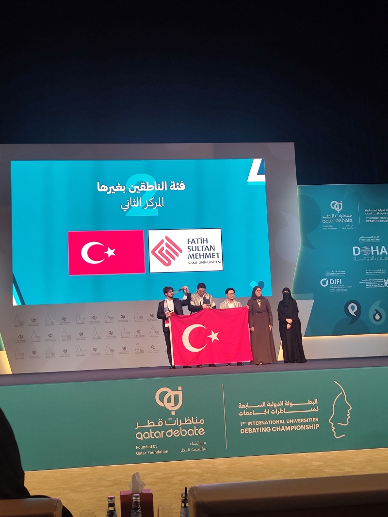 VII. Uluslararası Arapça Münazara Turnuvası Katar’ın başkenti Doha’da gerçekleştirildi. 50 ülkeden 100’ün üzerinde takımın yarıştığı turnuvada Türk takımları büyük başarı gösterdi. Anadili Arapça olmayanlar kategorisinde ilk üç derece Türk takımlarının olurken Üniversite münazara takımımız dünya ikinciliğini kazandı. Yarışmada birincilik Boğaziçi Üniversitesinin üçüncülük ise Bursa Uludağ Üniversitesinin oldu.